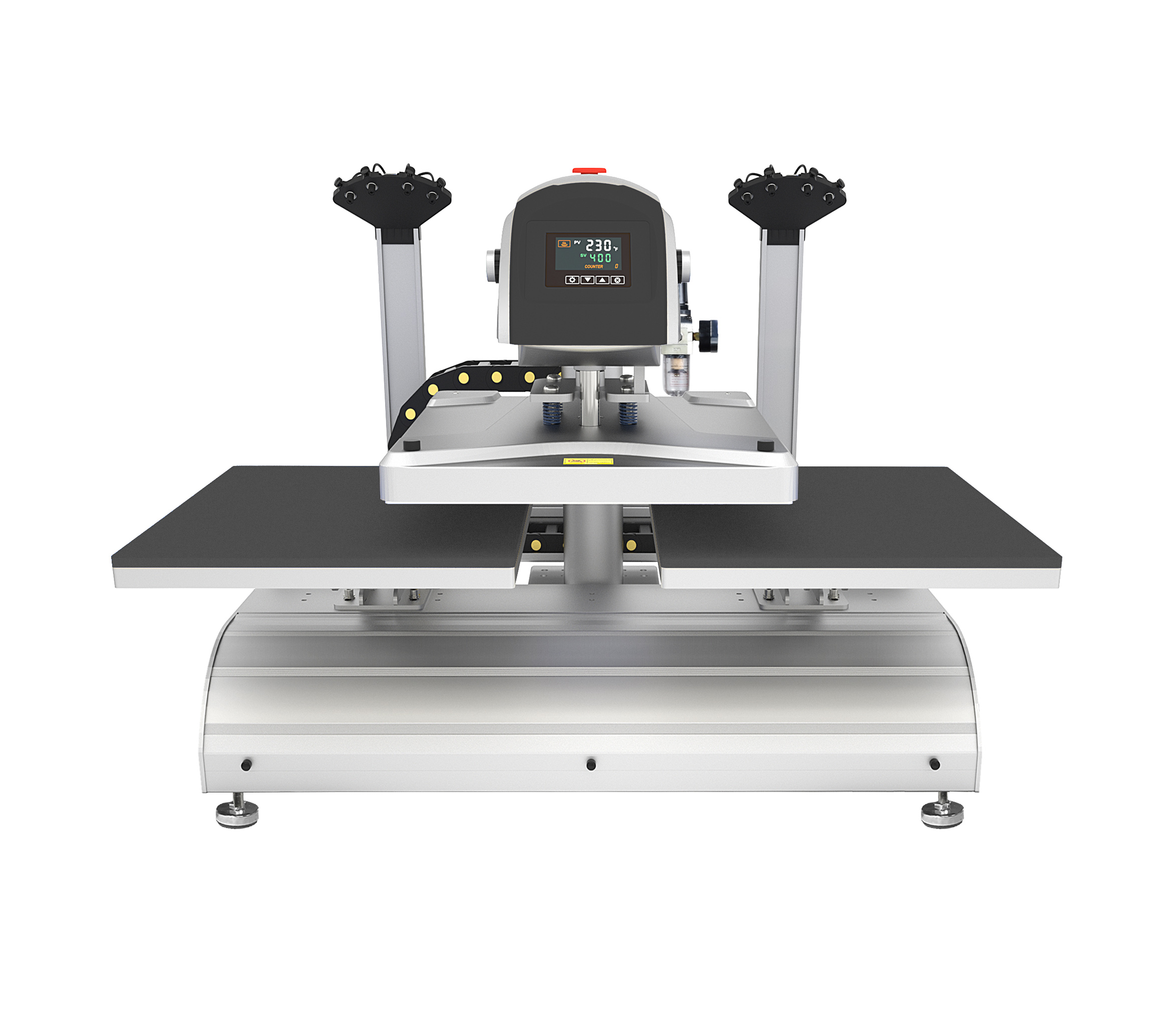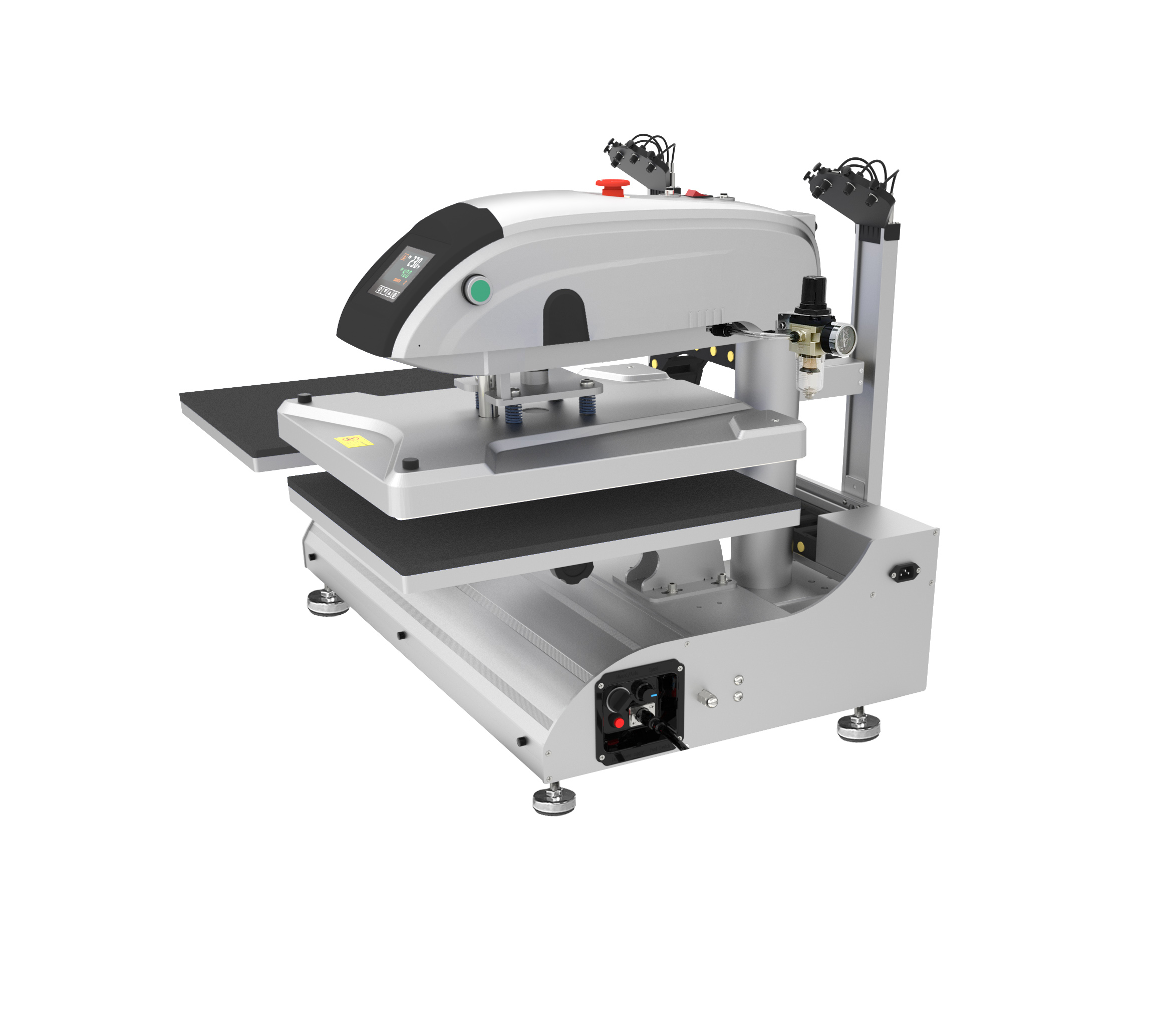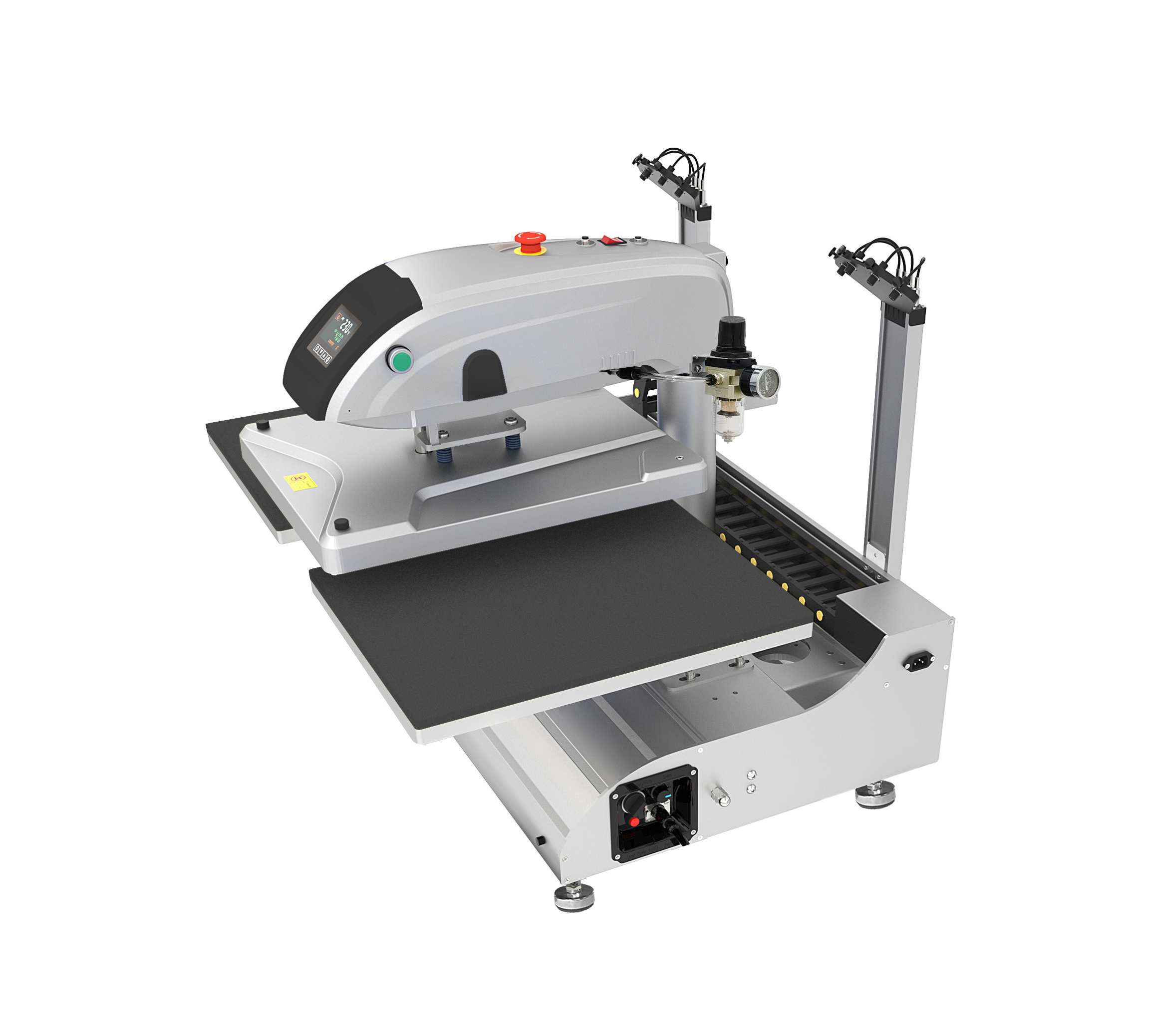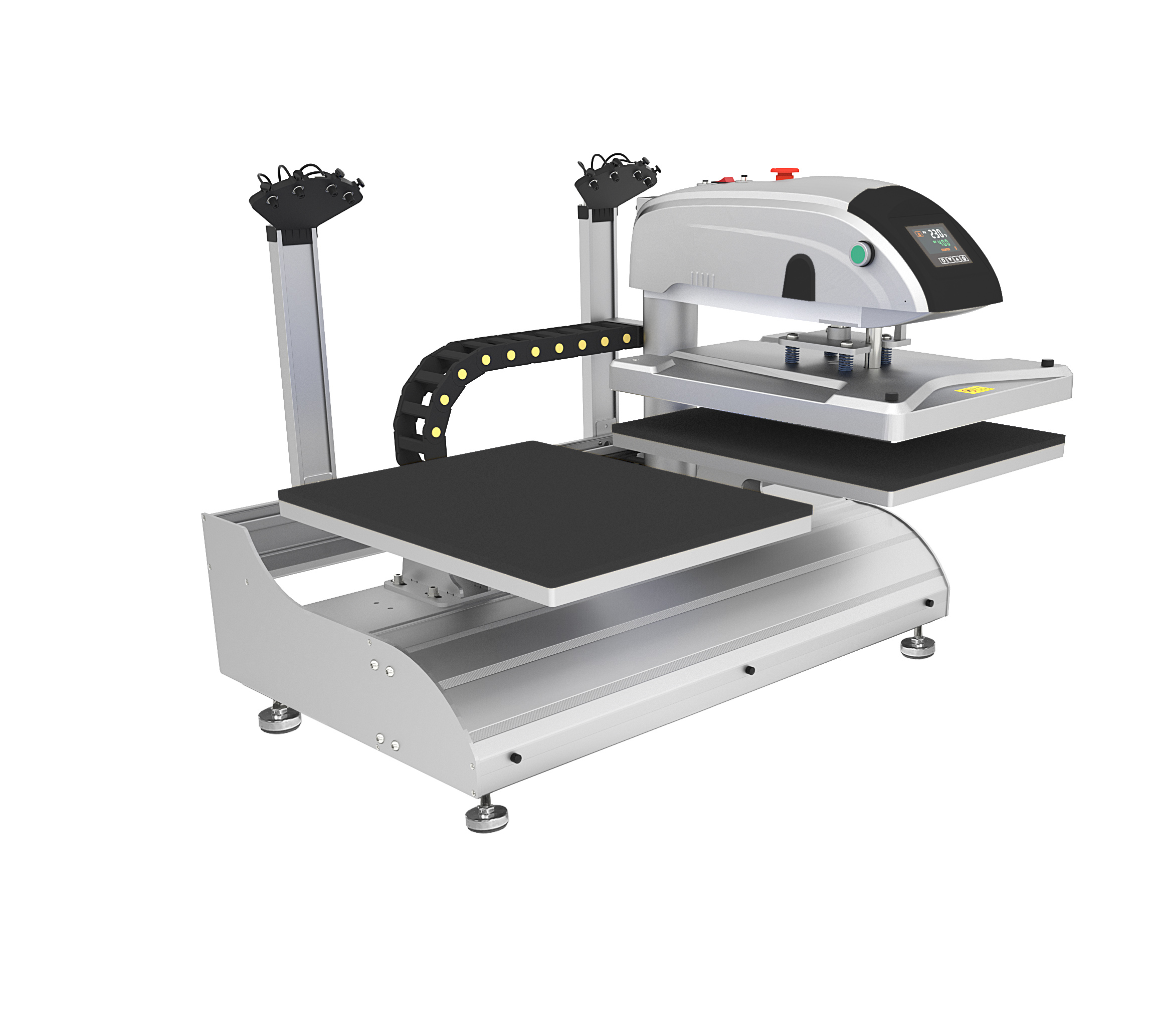 Pneumatic Dual Station Swing Away Fully Automatic Press With Lasers Threadable Base And Interchangeable Platens 16″x20″ 110V PLUG
